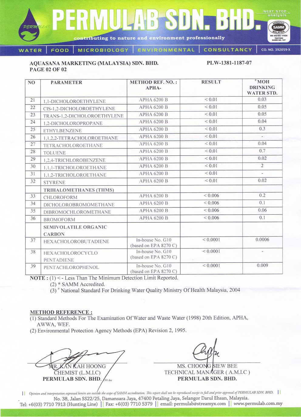 The performance testing for the reduction of synthetic chemicals (VOCs) was also documented under more stringent conditions than normal‚ or than is required by the certification standards. Virtually all other companies choose to have this chemical reduction testing performed by adding the challenge chemicals to de-ionized water‚ free from the competitive influences of sediment and chlorine. This unrealistic method is allowed under the required NSF Standard #53, however does not represent real life conditions. In order to demonstrate Aquasana‘s superior performance under real life conditions‚ it was tested by adding the challenge chemicals to regular chlorinated tap water with a moderately high turbidity (sediment) level. This method of testing is considerably more challenging‚ and still the Aquasana system out performed all other brands!