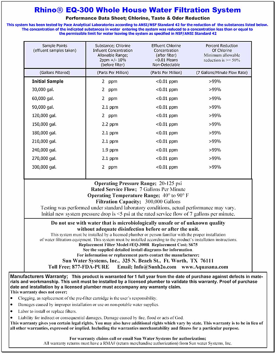 The Rhino® EQ-300 Whole House Water Filter has completed three years of