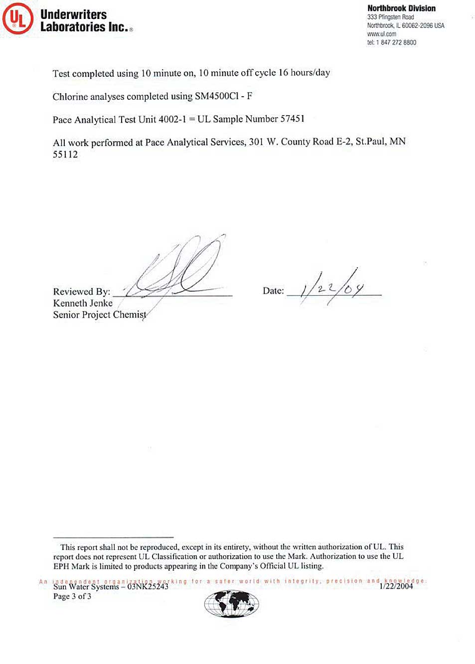 evaluation by Underwriters Laboratories. The product, the factory and