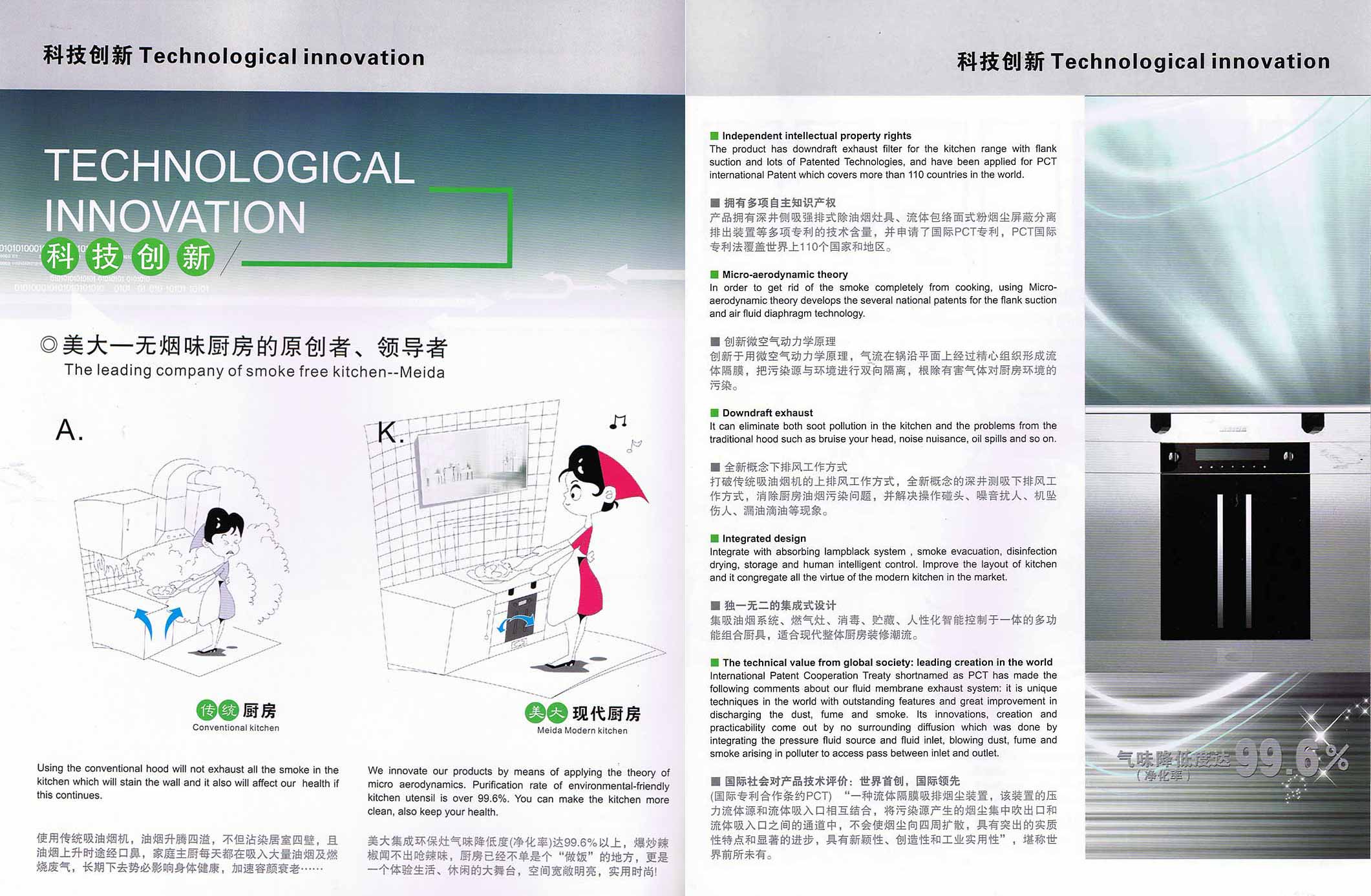 by means of applying the theory of micro aerodynamics. Purification rate of environmental-friendly kitchen utensil is over 99.6%. You can make the kitchen more clean, also keep your health.