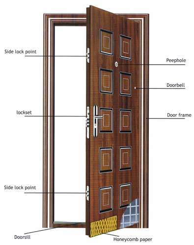 • Air-bay-type seal(Double-Layer Magnetic Seal Strip) This kind of seal can seal the door better and release wearing of door and door frame-better sound & heat insulated. • 气囊式密封条 - 在门框上采用高级气囊式密封条,密封条和门框完全贴合,关门 后双密封使门扇吸附在门框上,使锁舌不受力,开关锁轻便,灵活;且具有缓冲, 隔音及保温功效。